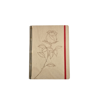 With an image of a rose engraved into the front cover and complemented by luxurious red velvet and a red elastic closer for a touch of elegance.